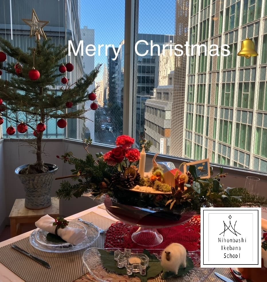 日本橋いけばなスクールでは毎年クリスマス講座でテーブルセッティングを致します。